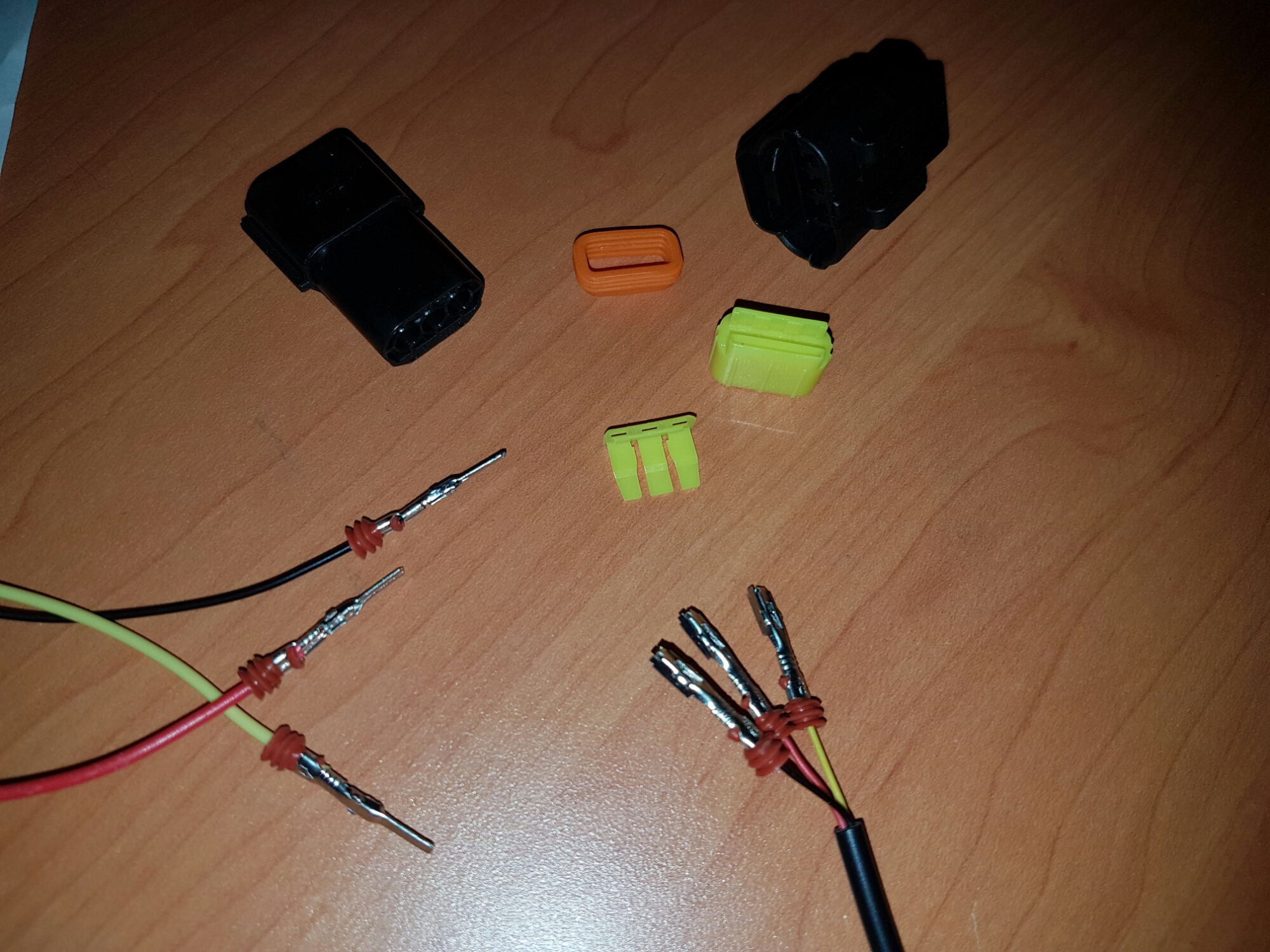 The oil temperature probe and pressure sensor were previously mounted in the remote oil filter assembly and simply needed their leads extended and crimped into the new connectors.
